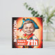 Kleine Piratenkarikatur. Ahoy da, Party kommt! Feiern Sie den 7. Geburtstag Ihres kleinen Kapitäns mit dieser kühnen und spielerischen Piratenveranstaltung mit einer individuellen Karikatur eines Piratenjungen im Stil eines Cartoon. Das Design bricht mit lustigem nautischen Flair aus - Stiefel, Schädelhut und Schatzkarten-Villen - perfekt, um die Szene für einen schwindelerregenden Geburtstagsbash zu gestalten! Passen Sie das Foto, den Namen und das Alter an, um es zu einem besonderen Erlebnis zu machen. Ideal für Jungen, die Lieben von Abenteuern, Schatzsuchen und Meeresgeschichten erleben. Ideal für Mailing oder digitale Einladungen. Gedruckt auf hochwertigen Kartenvorräten, ist es sicher, einen Sprung zu machen!