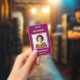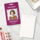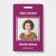 This custom badge design offers a bold and modern monochromatic look built on a rich field of deep magenta. The layout is focused and efficient, clearly framing the employee's photo in the center for immediate recognition. With the company name above and the employee's details below, this sophisticated style ensures your team looks unified, professional, and undeniably stylish.