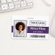 Try this professional horizontal ID badge design for a structured and tech-ready look. The layout features a clean white background, contrasting sharply with a bold purple horizontal bar that displays the individual's name and title with great visibility. A dedicated, clean area on the right is reserved for your company logo, while the bottom is strategically spaced to include a barcode or QR code for easy scanning access.