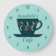 Niedlich anpassbare Wanduhr für Ihr Restaurant oder Ihr Café. Personalisieren Sie mit Ihrem Café oder Diner-Namen in aquamarin, um Ihre Kunden daran zu erinnern, wo sie essen. Einrichtung der hübschen Küche.