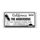 Fügen Sie Ihre Rücksendeadresse stilvoll mit diesen personalisierten Gummi-Adresse-Briefmarke hinzu. Mit dem Nummernschild von Kalifornien, Ihre Adresse und Ihren Namen. Ideal für alle Ihre Mails, als Geburtstag- oder Hauswärmeschenk oder als personalisiertes Geschenk für jeden Anlaß! Sie können es auch für Ihre Visitenkarten verwenden.