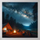 Ein gemütlicher Campingplatz unter einem Sternenhimmel in der Wildnis, mit der Milchstraße deutlich sichtbar.