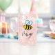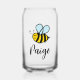 Custom can glass with happy honey bee design and name. Personalized gift for kids.