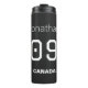 Stay hydrated and showcase your national pride with this customizable thermal tumbler featuring a sleek, athletic jersey-style layout. Designed for dedicated soccer fans and athletes, this thermal tumbler allows you to personalize the name and number, making it a perfect gift for teammates, coaches, or sports enthusiasts. The bold "CANADA" text and professional jersey font offer a match-day aesthetic that is ideal for bringing to the pitch, the gym, or the stadium. It appeals to soccer moms and dads looking for personalized team gear and supporters who want a durable, high-performance accessory that represents their favorite team while keeping drinks at the perfect temperature.