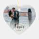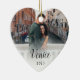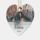 Gedenken Sie Ihre Flitterwochen oder einen besonderen Urlaub mit diesem eleganten Ornament mit einem Foto auf beiden Seiten. Personalisieren Sie Ihre eigene Beschriftung mit zwei Textzeilen, die auf jeder Seite in schwarzer Schrift auf einem weißen Overlay dargestellt sind.