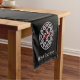 Ein kurzer Tischläufer mit keltischem Knoten-Design mit rotem Quadrat-Kreuz in der Mitte und anpassbarem Text. Ändern Sie den Text in den Namen des thematischen Party oder Ihren Familiennamen.