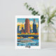 Eine lebhafte und farbenfrohe Abbildung der Skyline von Chicago, die mit den berühmten Wolkenkratzern wie dem Willis Tower und dem Tribune Tower aufwartet. Das Bild zeigt die architektonische Grandeur der Stadt, mit einem Schwerpunkt auf den Stilen modern und Art-Déco.