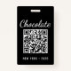 Custom Chocolate Festival QR Code Exibitor ID Badge with clean black and white design. Ideal for vendors and exhibitors who need clear identification at chocolate events, food festivals, and trade shows. Professional, modern, and easy to personalize.