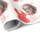 Geschenkpapier mit individuellem Foto und Namen Weihnachtengel-Award Geschenkpapier mit einem roten Spitzen bedeckt lächelnden Engel mit einer Kerze Licht. Das Vintage Spitzenmotiv der sich überschneidenden Sterne und Blume erinnert an die uralten Meisterwerke der Spitzenherstellung. Personalisieren Sie mit dem Namen und Ihrem Foto mithilfe der bereitgestellten Vorlage. Wir spezialisieren uns auf kundenspezifische Designs, also kontaktieren Sie uns, wenn Sie ein einzigartiges, maßgeschneidertes Layout mit diesem Engeldesign wünschen.