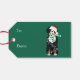 Festlicher Personalisierter Weihnachtsurlaub Berner Hund gekleidet in Weihnachtsmannmütze und grün-weiß Schal mit Weihnachtsbeleuchtung dekoriert. Niedlicher Weihnachtsgeschenk-Tag für Bierliebhaber!
