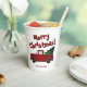 Custom Christmas party cup with red truck and tree . Old vintage Chevy truck hauling a Christmas tree. Fun design for the holidays. Personalize with your own text and colors.