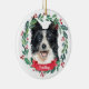 Dekorieren Sie Ihren Baum oder schenken Sie in dieser Urlaubssaison ein besonderes Geschenk mit dieser eleganten Weihnachtsbräune in einem Kranz-Design-Weihnachtsschmuck und passender Dekoration. Dieser Grandschmuck ist mit einem Aquarellhund in einem grünen und roten Kranz mit Heiligen und Beeren auf der einen Seite und deinem Foto auf der anderen Seite gestaltet. Personalisieren Sie mit Ihrem Foto, nennen Sie das Vorjahr zurück. Diese Grenz-Collie-Weihnachtsschmuck wird bei Grenzkologen, Hundefreunden und Tierliebhabern zum Favoriten. Besuchen Sie unsere Kollektion für passende Grenz-Weihnachtskarten, Wohngestaltung und Geschenke. COPYRIGHT © 2020 Judy Burrows, Black Dog Art - Alle Rechte vorbehalten. Custom Christmas Pet Hund Foto Border Collie Keramik Ornament