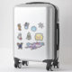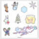 Maßgeschneiderte Weihnachtskleber Vinyl ausgeschnitten Weihnachtssticker. Leichter Stock, große Abnutzung und Tränen. Niedliche Urlaubsstile, 8 verschiedene Designs auf einer Seite. Schneemann, Rentier, 2 Schneeflocken, Baum, hängende Glühbirnen, Engel, Bonbons und Schneeflocken.