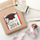 Fügen Sie diesen Abschluss-Aufklebern, Favoriten, Tags oder Umschlag Aufklebern einfach "Jeder Schulname oder Graduate's Name Dankeschön!" oder Ihren eigenen Text hinzu. Große Klasse von 2014 Abschluss Aufkleber in cooler Goldtexte und eine schwarze Graduierkappe mit Goldkleckse alle auf einer weißen Ankündigung. Auf diesem Aufkleber des Abschlusses befindet sich ein eleganter roter Rand. Nett für Kinder, Jugendliche und Männer und Frauen, die Absolventen aller Altersgruppen sind!