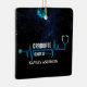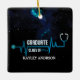 Ein modernes, einzigartiges und elegantes Blau-Weiß-Stethoskop in Heartbeat-Form, Custom Abschluss Name Year Klasse eines 2023-Absolventen. Klassische Sonderschule oder Uni-Abschluss Ornament für den Studierenden. Personalisieren Sie mit Ihrem geschlossen Jahrgang, dem Namen des Kindes und der Schule unter dem schwarzen Gradmesser. Elegante Goldtypografie für ein Elternteil.