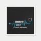 Ein modernes, einzigartiges und elegantes Blau-Weiß-Stethoskop in Heartbeat-Form, Custom Abschluss Name Year Klasse eines 2025-Absolventen. Klassische Sonderschule oder Uni-Abschluß Napkins für den Studierenden. Personalisieren Sie mit Ihrem geschlossen Jahrgang, dem Namen des Kindes und der Schule unter dem schwarzen Gradmesser. Elegante Goldtypografie für ein Elternteil.