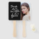 Behalt cool und unterstütze sie bei einem Wettbewerb, Abschluss oder jeder Veranstaltung mit diesem Foto-Handfan mit einem weißen Pinselskript des Zitats "obwohl sie nur wenig sie ist erbittert" von A Midsommer Night's Dream von William Shakespeare vor einer bearbeitbaren Hintergrundfarbe auf der Vorderseite (klicken Sie auf anpassen, um zu ändern). Klicken Sie zum Hinzufügen von Text auf Anpassen. Personalisieren Sie es, indem Sie das Beispiel/Platzhalter-Foto durch Ihr eigenes Foto ersetzen. *Bitte beachten Sie, dass das Zazzle-Wasserzeichen, das in der Zoomvorschau angezeigt wird, NICHT auf dem gedruckten Endprodukt erscheint. © Rosewood and Citrus