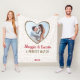 Diese Decke "Perfect Match" enthält benutzerdefinierte Namen von Paaren mit Übereinstimmungen im Hintergrund.