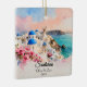 Celebrate a love that spans the globe with this elegant, double-sided ceramic ornament. Featuring a stunning hand-painted watercolor illustration of the iconic blue-domed churches of Santorini, this keepsake is the perfect way to commemorate a destination wedding, a romantic honeymoon, or a dream vacation.
