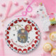 Cowgirl 3. Geburtstagszeitung Teller verfügt über ein kleines Cowgirl, das in einer Kuh-Druckweste gekleidet ist, und Cowboyhut und Stiefel, ein Hobby-Pferd, Sterne, Rotballon, Text, der mich als 3 bezeichnet, rote und blaue Sterne Rand, und einen Bereich, den Sie mit einem Namen und Alter anpassen können, danke Nachricht, oder alles, was Sie gewollt es zu lesen!