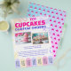 (Note: Flyer tear-offs do not come pre-cut) Have delicious custom cupcakes or cakes to offer? This fun and eye-catching bakery flyer design is perfect for attracting attention to your sweet creations! Designed in vibrant pink, purple, and yellow tones, it features pretty images that you can change out with your own. This customizable cupcake and cake flyer allows you to easily add your own details — such as flavours, custom orders, pricing, event types, location, and contact information. With tear-off tabs for quick inquiries (slits not pre-cut), this is ideal for home bakers, bakeries, and dessert artists offering cupcakes, cakes, and special-occasion treats.