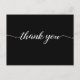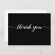 Personalize this simple and easy to use thank you, black, postcard template with your company's logo, message, name, and return address. Let your clients, customers, patrons know you are grateful for their support during these uncertain times. Featuring a printed modern "thank you" script with long-tailed embellishments.