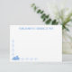 This card features a hand-drawn blue silhouette of a bunny with a small border of light blue daisy silhouettes going partly up the side and across the bottom. There is a spot in the middle of the top for you to put your own name to create special, personalized stationery or keep the saying as it is which reads, "SOME BUNNY IS THINKING OF YOU." On the back of the card is a repeating pattern featuring bunny and daisy silhouettes.