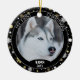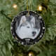Custom Cute Puppy Photo On White Gold Snowflakes Keramik Ornament