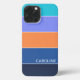 Moderne klassische, dunkelazurblau, lachsorange, violett lila und türkisblau gestrichene Blockstreifen in türkisfarbenem Wasser. Mit Raum, um mit dem Namen Ihrer Wahl. Schönes, modernes und cooles Cover für den Trend-geschickten und kunstliebenden angesagten Trendsetter, künstlerischer Motif-Liebhaber, der will, ihr Handy vor Staub und Schmutz, Abnutzung und Tränen zu schützen. Dieses Design ist erhältlich in Apple iPhone 6, 7, und 8 Plus, 10 oder X, XR, XS, 11, 12, 13 Mini, 14, 15 Plus, und Pro Max Handy Hüllen. Zeigen Sie Ihren Stil, sehen Sie in der Mode und fühlen Sie sich stilvoll mit einem einzigartigen Design auf einem mobilen Zubehör Ihrer Wahl.