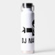 Custom DJ Disk Jockey isolierte Wasserflasche für Musik deejay. Auch gut für Kaffee. Fügen Sie Ihren eigenen Künstlernamen, lustiges Zitat, Slogan oder Sprichwort hinzu. Cooles Diskjockey-Logo mit Kopfhörern. Schwarzweiß-Trinkbehälter für Zuhause oder Büro. Personalisierter Becher für Disc Jockey, Entertainment Business, Performance, Entertainer, Club, Bar, Pub, Gesellschaft, Geburtstagsparty etc. DIY-Ware und Marketing-Materialien.