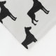 Diese Vliesdecke ist mit einer Silhouette eines Doberman Pinscher Hundes im Hintergrund gefliest und platziert für einen Namen in der Mitte, perfekt für einen Doberman Pinscher Hund oder ihren Besitzer.