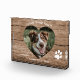 Ehre die Erinnerung an deinen vierbeinigen Freund mit diesem Custom Dog Memorial, Forever in unseren Herzen, Rustikales Holz mit einem herzförmigen Ausschnitt. Bereit zum Hinzufügen eines eigenen Fotos und eines eigenen Haustiernamens. Wenn Sie Ihr Foto verändern oder verschieben möchten, klicken Sie am Ende der Vorlage auf Anpassen.