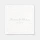 Personalisiertes Skript benutzerdefinierte Coupname und Datum Hochzeitspapier Napkins. Elegantes, klassisches, minimalistisches Design. Dusty blau und weiß.
