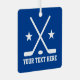 Gewohnter Eishockey-Sportplatz Weihnachtsschmuck für Kinder und Erwachsene. Laden Sie Ihr eigenes Bild auf die Rückseite, um ein einzigartiges Weihnachtsbaumschmuck zu kreieren. Erstelle einen für Hockeyspieler, Kinder, Vater, Ehemann, Freund, Freund, Sportcoach, Team, Partner, Chef, Mitarbeiter, Bruder, Onkel, Großvater, Junge, Mädchen usw. Erstellen Sie Ihre eigenen Urlaubsdekorationen für ihn. Blau oder benutzerdefinierte Farbe mit personalisiertem Text. Doppelseitig mit String. Crossed Hockey Sticks und Puck Logo mit Stars.