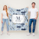 Custom Elegant Blue Bow Floral Monogram Fleecedecke
