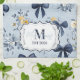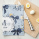 Custom Elegant Blue Bow Floral Monogram Geschirrtuch