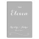 Maßgeschneiderte Tischnummern in Grau und Weiß mit individuellem Text