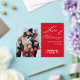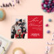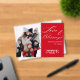 This holiday greetings card is made more unique, with the snowy background of the family photograph removed, to accentuate the clear acrylic. The solid red that shares the other half of the card provides the perfect balance. This modern, minimalist holiday card has elegant white script against the red background that reads, "Love and Blessings from our hearts to yours". It's easy to customize with one family photograph, family name and the current year. Exclusive to this card is the overlay of text over text with the family name and year behind it that gives a unique depth effect. You can choose from many color-ways. You're invited to visit the growing Collection on this product page, or the Home page, to see more designs.