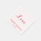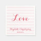 Erstellen Sie Ihre eigenen individuellen, personalisierten, eleganten, modernen, rosa Streifen Muster, schöne Typografie / Drehbuch / Schriftart, Hochzeit / Jubiläum Party Cocktail-Papierservietten. Geben Sie einfach Braut und Bräutigam oder Ehefrau und Ehemann Namen, und das Hochzeitstermin, um sich anzupassen. Elegante, elegante Papierservietten, perfekt für Hochzeitsempfang, Jubiläumsfeiern, Verlobungsfeiern und vieles mehr.