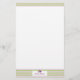 Diese Schreibwaren sind mit waagerechten lila und grünen pastellfarbenen Streifen oben und unten versehen. Eine lila Rose und Vegetation auf einem Ständer für Ihren Text ist Set am Ende des Blattes. Der Schreibbereich des Blattes ist weiß. Personalisieren Sie den Text mit einem Namen oder Initialen oder klicken Sie auf Anpassen, um eine Schriftart, Größe oder Farbe auszuwählen, die Sie möchten. Machen Sie es für Sie oder eine spezielle Geschenkidee.