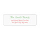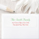 Erstellen Sie Ihre eigene, personalisierte, schlichte, moderne und schlichte Rücksendeadresse für die Weihnachtsbriefe der Familie mit dem Namen und der Adresse in Rot und Grün. Geben Sie einfach Ihren Namen / Familiennamen / Firmennamen und Ihre Adresse ein. Ideal für sowohl Zuhause als auch Business, persönliche und offizielle Mailings. Elegante Rücksendeadressen-Aufkleber zum Geburtstag, Hochzeit, Heiratsjubiläum, Abschluss, Brautparty, Babydusche, Weihnachten, Feiertagen oder anderen besonderen Anlässen.