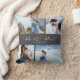 Personalisieren Sie diese moderne elegante Kalligrafie Mr. und Mrs. Drehkissen mit Ihrem Familiennamen, 4 Lieblings-Hochzeit-Fotos und dies wird ein schöner Sake des besten Tages überhaupt! Großartiges Geschenk für alle Neuvermählten, den Hochzeitstag Ihres Elternteils oder eine Verlängerung des Gelübdes. Das ist die kohlegraue Version.
