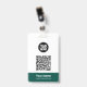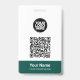 Easily personalize this Custom Administrative professional Name Badge without photo, featuring an easy copy and paste qr code template, Scan Bar Code and large business logo. A simple business design in dark green and white colors fully customizable in front and back sizes, sans-serif basic and modern fonts and a professional and clear look, perfect for small business employee, boss, guests. These business id badges supplies are avaiable with lanyard, metal clip or with retractable. No minimum order, but save money and enjoy Zazzle discounts by multiple orders!
