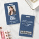 Secure your workspace with high-impact style using this "Modern Navy" minimalist photo and barcode staff name badge. Custom-designed for a sophisticated, contemporary aesthetic, this premium ID card features a deep, professional blue palette paired with bold, high-contrast typography that highlights your company logo and employee data. More than just an ID, it serves as a soulful, artisanal tool that turns every scan, trade show, or office visit into a high-quality, personalized experience for your team. Simply click "Personalize" to upload your unique logo, staff photo, and specific barcode, ensuring you leave a polished, professional, and joyful impression as you scale your corporate operations.