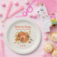 Orangefarbene Kürbisse und Herbstlaube Erntedank Dinner Papier Teller personalisiert mit Ihrem eigenen Text. Fügen Sie Ihren Familiennamen und das Datum oder alles andere, was Sie möchten, hinzu.