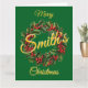 Mit dieser Personalisierten Weihnachtskarte können Sie ganz persönliche und stilvolle Urlaubswünsche erfüllen. Eine festliche Gartenanlage mit traditioneller Heilig- und Beeren umrahmt eine zarte Kontur des Herzens. In der Mitte wird Ihr Familienname (oder ausgewählter Text) neben dem Wort "Weihnachten" mit einem zeitgenössischen Flair angezeigt, der für Ihre Anpassung bereit ist. Dieses Design bietet eine moderne Drehung zu einem klassischen Urlaubsthema. Eine wunderbare Art, den Geist der Saison mit einer einzigartigen, persönlichen Touch zu teilen. (Anleitung: "Mit dem Zazzle-Designwerkzeug können Sie einfach mit Ihrem Namen personalisieren!")