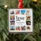 Erstellen Sie Ihre eigene personalisierte 12-Foto-Collage, Weihnachtsfeiertagsschmuck mit Ihren individuellen Bildern auf einem einfachen, modernen, weißen Hintergrund. Die Weihnachtsschmuckfigur enthält auch Ihren Familiennamen, das etablierte Jahr und eine handgeschriebene "Liebe". Fügen Sie Ihre Lieblings-Fotos, Designs oder Kunstwerke, um etwas wirklich Einzigartiges zu schaffen.