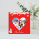 Individuelles Familienherz und niedlicher Schneemann auf der Weihnachtsgrußkarte.