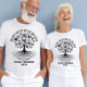 Custom family tree reunion t-shirt featuring a heart tree with deep roots, accompanied by the saying "Our roots run deep and our love runs deeper." The best thing about this t-shirt is that you can edit the year of the family reunion and customise it with your name—a perfect family reunion gift for the whole family.