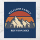 Dieser coole Retro-Sonnenuntergang über Felsgebirgen in der Natur macht das Weinflaschenlabel zu einem großartigen Bild für einen Wiedersehen, eine Fahrt oder einen Sommerurlaub. Fügen Sie einfach Ihren eigenen Nachnamen und das Jahr mit unserem Personalisierungstool auf dem blauen Label hinzu.